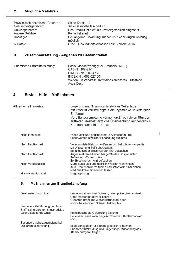 Zusammensetzung (Gew.-%): Ethylenglykol 91, Inhibitoren und Wasser 9