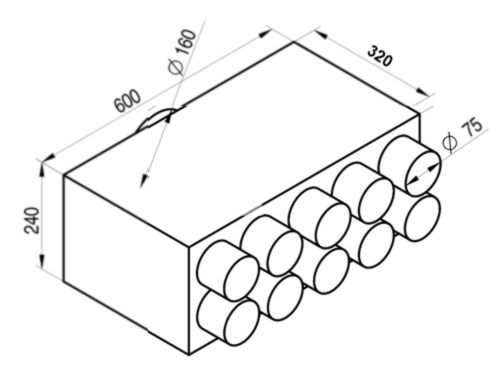 Der schallgedämmte Verteilerkasten mit den Anschlüssen 10xDN75 und 1xDN160 ist passend für alle Lüftungsschlauchsysteme in DN75. Er zeichnet sich durch seine einfache und schnelle Montage aus. Die benötigten Dichtringe sind im Lieferumfang enthalten.