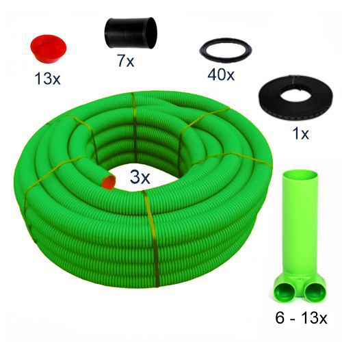 Das Paket besteht aus drei antibakteriellen und antistatischen Luftverteilschläuchen, 6 - 13 Ventilanschlüssen, Dichtringen und dem notwendigen Montagematerial. Die Montageanleitung macht den Einbau kinderleicht, aber falls Sie Fragen haben sollten, stehen wir Ihnen gerne zur Verfügung. Das Rohbaupaket ist für eine Nennluftmenge von maximal 230 m³/h ausgelegt. Die zu belüftende Fläche sollte 150 m² auf einer Etage nicht überschreiten