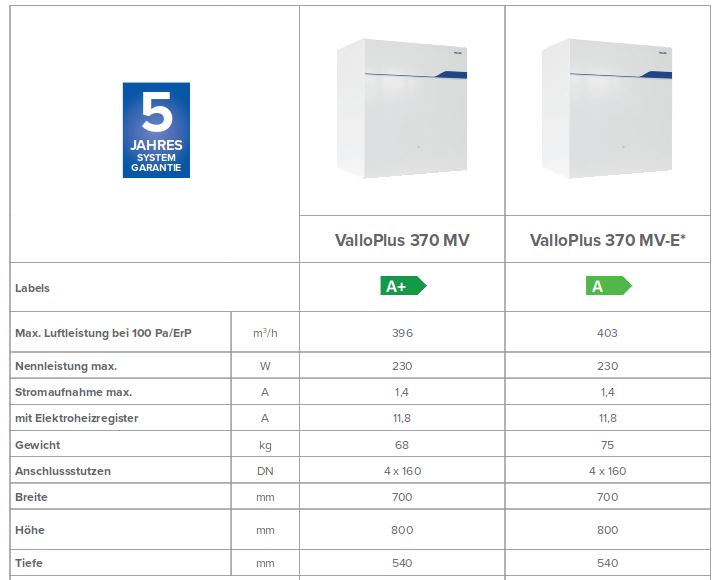Vallox ValloPlus 370 MV mit Enthalpiewärmetauscher